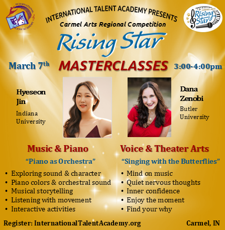 - The Carmel Arts Regional Rising Star Competition is open to all pianists, singers, actors, dancers, and freestyle performers ages 5-18 from the Midwest region and beyond.